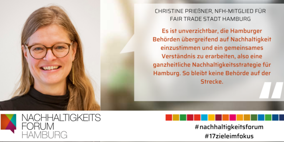 Im Blog des Nachhaltigkeitsforum Hamburg „17 Ziele im Fokus“ werden Menschen aus verschiedenenen Organisationen regelmäßig Fragen rund um die Sustainable Development Goals (SDGs) gestellt. Im aktuellen Beitrag erläutert Christine wie sie den Umsetzungsstand der SDGs in Hamburg bewertet, worin sie die größten Hebelpunkte sieht und was ihre persönliche Vision für das Jahr 2030 ist.