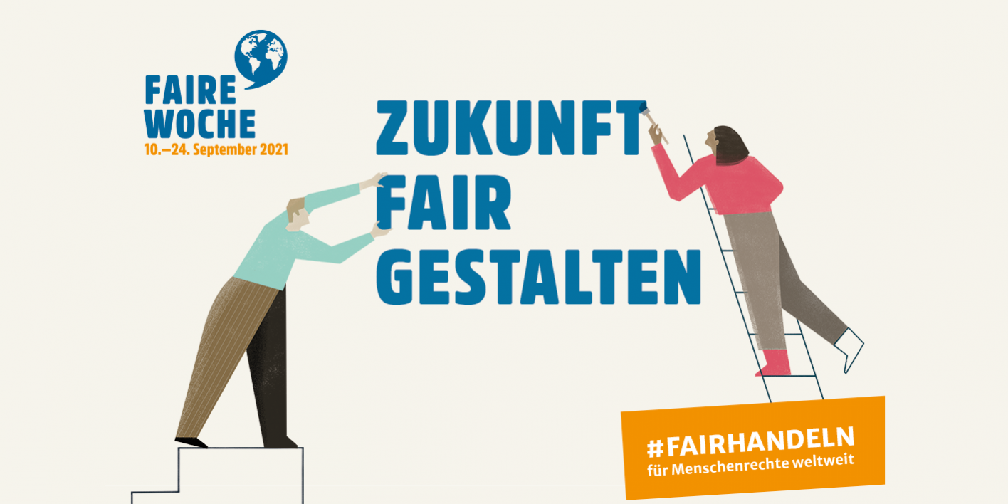 Seit 20 Jahren lädt die Faire Woche jeden September alle Menschen in Deutschland dazu ein, Veranstaltungen zum Fairen Handel in ihrer Region zu besuchen oder selbst zu organisieren. Mit jährlich rund 2.000 Aktionen ist sie bundesweit die größte Aktionswoche des Fairen Handels. Die Faire Woche 2021 findet vom 10. bis 24. September 2021 zum Thema „Menschenwürdige Arbeitsbedingungen“ unter dem Motto „Zukunft fair gestalten – #fairhandeln für Menschenrechte weltweit“ statt.