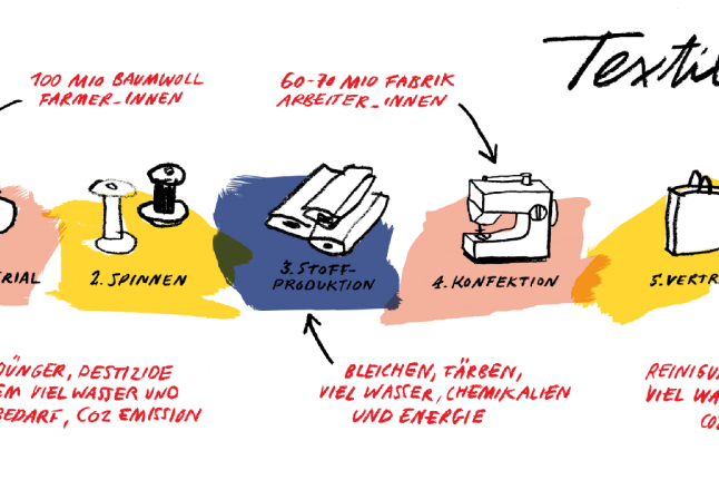 Egal ob Du in einer Kita, einer Schule, in einem Verein oder in einem Unternehmen arbeitest: Fast Fashion, ungerechte Handelsstrukturen, Extraktivismus, koloniale Kontinuitäten – all das gilt es zu überwinden, wenn wir eine zukunftsfähige Wirtschaftsweise stärken möchten. Du möchtest mehr darüber erfahren?