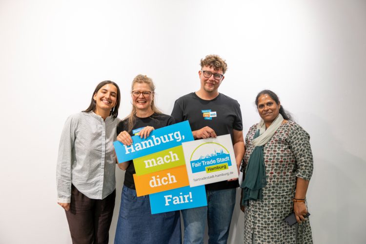 Unter dem Motto „Fair. Und kein Grad mehr!“ eröffnete die Fair Trade Stadt Hamburg die Faire Woche mit einer Podiumsdiskussion im Rahmen des 1. Hamburger Foodfestivals „Open Mouth“. Zu Gast waren Isabel Tadmiri und Suganthi Thangavelu der indischen Erzeugergemeinschaft Last Forest mit Sitz in Kotagiri im Herzen des Nilgiri-Gebirges in Süd-Indien. Last Forest vermarktet als sozial engagiertes Unternehmen lokale Wald- und Agrarprodukte wie Honig für 45 Produzent:innengruppen und 150 Dorfgemeinden. Isabel und Suganthi berichten, dass Änderungen des Klimas und der vegetativen Kreisläufe in ihrer Heimat bereits normal sind und sich kaum jemand noch darüber wundert. Durch veränderte Landnutzung rücken die Lebensräume von Menschen und Wildtieren immer näher zusammen. Suganthi sagt, der Anbau von Hirse statt Reis sei eine Möglichkeit, mit dem veränderten Niederschlag und längeren Trockenzeiten umzugehen. Frauen und Ältere in Entscheidungen einzubeziehen, sei Tradition in Kotagiri. Dies führe oft zu nachhaltigeren Lösungen.