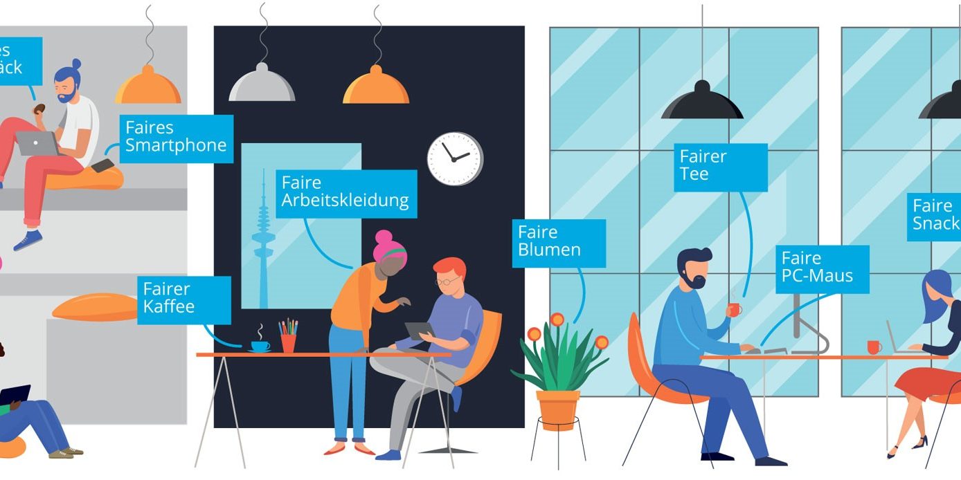 Von der Teeküche bis zum Smartphone – Es gibt viele Möglichkeiten den Fairen Handel ins Büro zu holen.