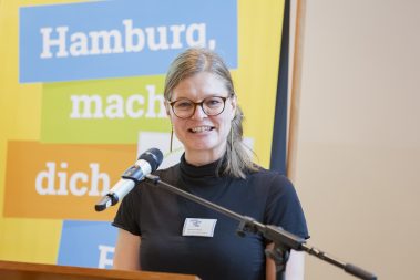 Almut Möller (Staatsrätin und Bevollmächtigte der Freien und Hansestadt Hamburg beim Bund, der Europäischen Union und für auswärtige Angelegenheiten), Zohra Mojadeddi (Abgeordnete der GRÜNEN Bürgerschaftsfraktion) und Arthur Darboven (Benecke Coffee/Hamburger Rat für Nachhaltige Entwicklungspolitik) haben uns viele wertschätzende und motivierende Worte mit auf den Weg gegeben.
