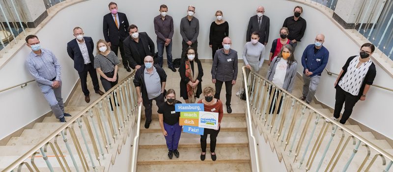 Mit dabei war auch Olaf Steinbiß von der SPD sowie Vertreter:innen der Arbeitsstelle Weitblick, der Behörde für Umwelt, Klima, Energie und Agrarwirtschaft (BUKEA), der Bücherhallen Hamburg, der Innovations Kontakt Stelle (IKS), der Agentur SCHIERRIEGER, der Senatskanzlei, der Stadtreinigung Hamburg und des Weltladen Osterstraße.