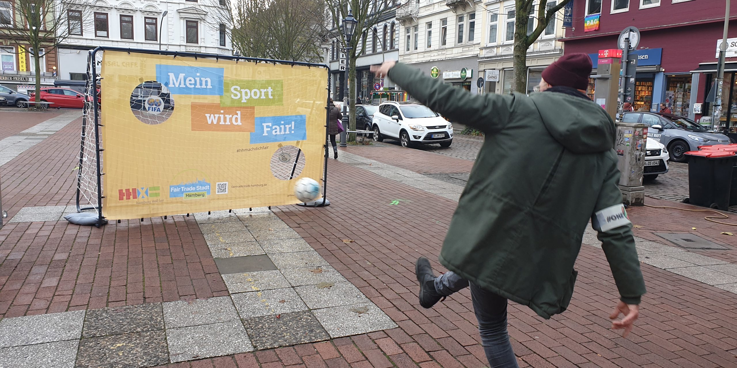 Das Torwandschießen wurde von den Passant:innen interessiert aufgenommen, für jeden Treffer gab es faire Schokolade. Bestwert waren drei von vier! Wenn das mal kein klares Zeichen ist.