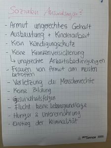 - Sensibilisierung für die menschenunwürdigen Arbeits- und Produktionsbedingungen im Globalen Süden
