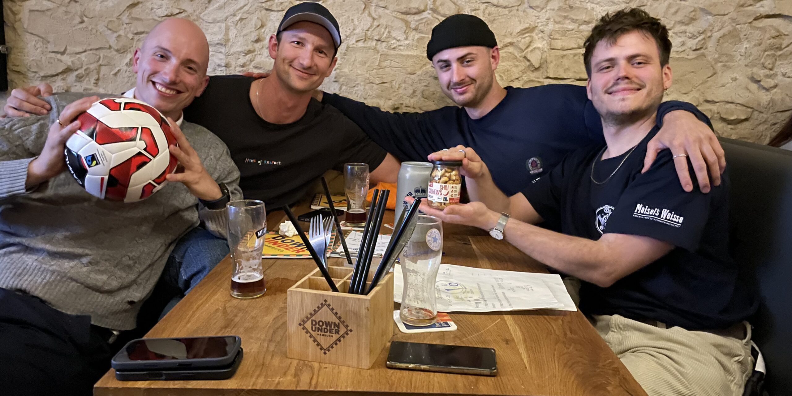 Am Abend des 15. Aprils wurde im Down Under mit Quizmaster Danny für die gute Sache weitergequizzt. In acht Runden, die vom Aufwärmen bis hin zum Grande Finale reichen, ging es querbeet durch alle Sportarten. Dabei wurde das Spotlight bewusst auf die Schattenseiten der Sportwelt geworfen und alles unter die Lupe genommen, was sonst gern unter den Rasen gekehrt wird: von Privatjetflügen über Stadionwürste bis hin zur Ballproduktion in Pakistan. Die Teams hatten gut zu knobeln und diskutierten angeregt über die Inhalte, die wir mit dem Quiz platzieren wollten. Zwischendurch gab es einen Input von Sophie, unserer Referentin für Nachhaltigkeit und Fairen Handel im Sport, bei dem das Projekt „Hamburg spielt Fair!“ vorgestellt wurde. Gefreut hat uns besonders, dass ein Großteil der Teilnehmenden nicht aus dem Umfeld der Fair Trade Stadt Hamburg stammten und somit zum ersten Mal mit dem Thema Fairer Handel im Sport in Berührung kamen – genau das wollen wir schließlich mit solchen Formaten erreichen. Außerdem gab es nach dem Quiz interessierte Nachfragen und Kooperationsanfragen.