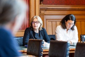 In ihrem Input hat sie uns am konkreten Beispiel der Ernährungsstrategie für Hamburg das Potenzial und die Relevanz des Fairen Handels vorgestellt. Denn der Ernährungsrat Hamburg hat sich zum Ziel gesetzt, in Hamburg eine nachhaltige Ernährung voranzubringen, beispielsweise durch die Förderung einer nachhaltigen Gemeinschaftsverpflegung. In diesem Zusammenhang setzt er sich dafür ein, dass fair gehandelte Produkte in allen städtischen Einrichtungen verstärkt eingesetzt werden – ein wichtiger Hebel, um den Fairen Handel in Hamburg voranzubringen. Diesbezüglich hat Julia Sievers insbesondere auch auf das Potential und die Notwendigkeit hingewiesen, den Fairen Handel im Rahmen der Verpflegung in Kitas und Schulen zu fördern – denn so kann ein wichtiger Beitrag für ein zukunftsfähiges Ernährungssystem und für die Erreichung der global vereinbarten Nachhaltigkeitsziele geleistet werden. Abschließend kam sie zu dem Schluss, dass die Förderung des Fairen Handels bei der Erarbeitung der Ernährungsstrategie eine wichtige Rolle spielen sollte.